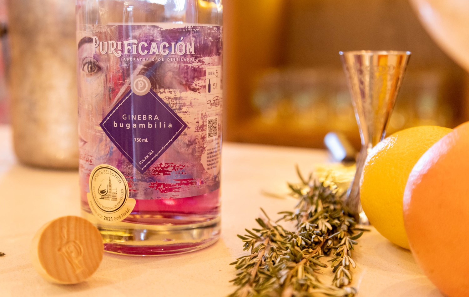 Está botella es creada por Purificación Laboratorio de Destilados, una destilería artesanal ubicada en la CDMX. Ganadora de medalla de oro en el Concurso Mundial de Bruselas 2021.